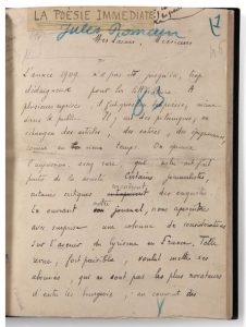 ROMAINS JULES (1885-1972) MANUSCRIT autographe, La Poésie Immédiate, [1909] ; 28 pages petit …