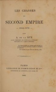 LA RÜE (Adolphe de). Les chasses du Second Empire, 1852-1870. Paris, Firmin-Didot, 1882. In-12, …