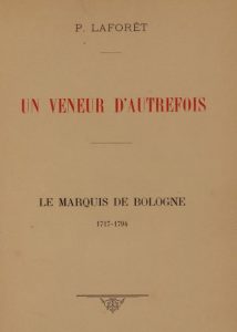 LAFORET (Paul). Un veneur d'autrefois. Le marquis de Bologne 1717-1794. Paris, Pairault, 1898. …