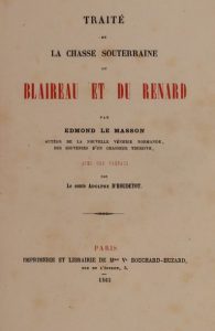 LE MASSON (Edmond). Traité de la chasse souterraine du blaireau et du renard. Paris, …