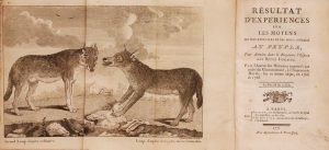 [LISLE DE MONCEL (Nicolas de)]. Résultat d’expériences sur les moyens les plus efficaces et les moins onéreux au peuple, pour détruire dans le royaume l’espèce des bêtes voraces… Paris, Guillyn et Gueffier, 1771. In-8, 12,5 x 19,5 cm, 48 pp., frontispice replié, 1 tableau replié, demi-basane fauve, dos lisse (reliure de l’époque). Édition originale rare. Illustré d’un beau frontispice gravé. Avec un tableau replié.