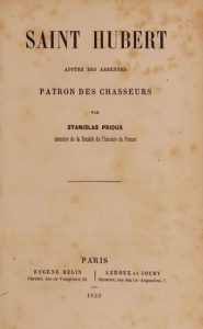 PRIOUX (Stanislas). Saint Hubert, apôtre des Ardennes, patron des chasseurs. Paris, Belin, Leroux …
