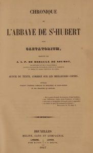 ROBAULX DE SOUMOY (A. L. P. de). Chronique de l’abbaye de St-Hubert dite Cantatorium. …