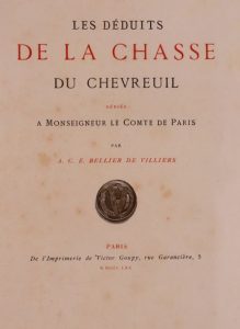 BELLIER DE VILLIERS (Ernest). Les déduits de la chasse du chevreuil. Paris, Goupy, 1870. In-4, 8 …