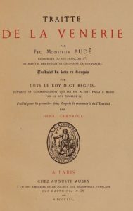 BUDE (Guillaume). Traitté de la vénerie… Paris, Aubry, 15 juillet 1861. In-8, 13 x 20,5 cm, …