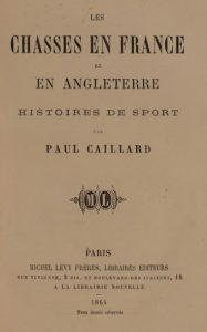 CAILLARD (Paul). Les chasses en France et en Angleterre. Histoires de sport. Paris, Michel Lévy …