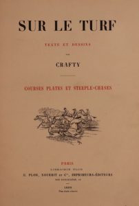CRAFTY. Sur le turf. Courses plates et steeple-chases. Paris, Plon & Nourrit, 1899. In-4, 19,5 x 29,5 cm, 4 ff., 404 pp., percaline verte décorée (cartonnage de l’éditeur). Édition originale, illustrée de très nombreuses compositions de l’auteur.