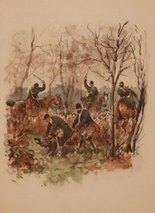 DIX HISTOIRES DE VÉNERIE. Paris, Hazan, 1952. In-4, 19,5 x 24,5 cm, 180 pp., 1 f., frontispice, broché. Belle édition illustrée de 15 compositions à pleine page de Karl Reille (dont celle de couverture) et de nombreux croquis dans le texte.