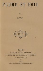 GYP. Plume et poil. Paris, Calman Lévy, 1885. In-12, 11 x 17,5 cm, 1 f. blanc, 3 ff., 306 pp., 1 …