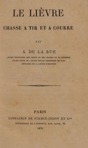 LA RÜE (Adolphe de). Le lièvre. Chasse à tir et à courre. Paris, Firmin-Didot, 1876. In-12, 11 …