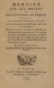 LE BRETON (François). Mémoire sur les moyens de perfectionner les remises propres à la …