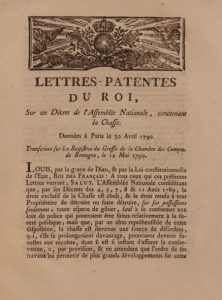 LETTRES-PATENTES du roi, sur un décret de l’Assemblée nationale, concernant la chasse. …