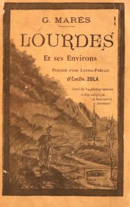 MARÈS (G.). Lourdes et ses environs… Bordeaux, G. Gounouilhou, 1894. In-12, 11,5 x 18,5 cm, VIII + 424 pp., papier marbré à la Bradel, couverture (cartonnage moderne). Rare édition originale d’un ouvrage sur Lourdes et sa région, qui contient un chapitre de souvenirs de chasse : isard, ours, ramier, etc. Préface d’Emile Zola. Illustré de reproductions photographiques.