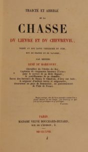 MARICOURT (René de). Traicté et abregé de la chasse du lièvre et du chevreuil. Paris, …