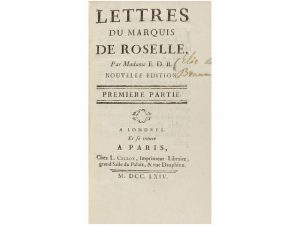 1764. (HUMANIDADES). E.D.B.: LETTRES DU MARQUIS DE ROSELLE. Paris: chez L. Cellot, 1764. 2 tomos en 1 vol. en 8°. I: 319 p.; II: 256 p. Enc. en plena piel, tejuelo, cortes pintados.