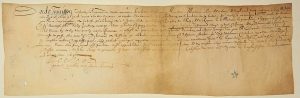 (1615. RÉCEPTION À BORDEAUX POUR LE MARIAGE DU ROI LOUIS XIII.) Parchemin (14 x 47)