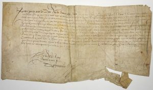 MANCHE. 1648. ÉGLISE DE ST MALO DE CARNEVILLE. Parchemin signé du Roi LOUIS XIV (Secrétaire, Régence d'Anne d'Autriche) contresignée LOMÉNIE DE BRIENNE de Paris le 9 Mars 1648. Lettre du Roi à l'Evêque de COUTANCES ou à son grand Vicaire en faveur de M. Jacques LE COURT Prêtre du Diocèse de COUTANCES qu'il nomme à la Cure de l'Église et Paroisse de ST MALO DE CARNEVILLE. Parchemin (25 x 48 cm)