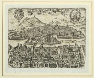 PARIS PARIS. 2 gravures XVIIe de Vue d'ensemble de la ville de PARIS dans ses remparts : «Lutetia urbs …