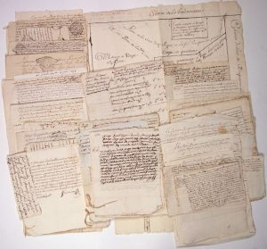 (CALVADOS). Archive de Pierre HARDOUIN DE LAVALLÉE, Sieur des Ozerets, Officier de feu Madame la Dauphine, demeurant en la Paroisse de PRÊTREVILLE (14). Environ 80 pièces de 1671 à 1765.