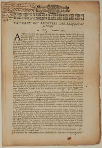 (SEINE ET MARNE) OTHIS. 1694. Extrait du jugement concernant la Vente du Château et Maison Seigneuriale, Fief, Terre & Seigneurie de BEAUPRÉ sis en la Paroisse d'OTHIS près de DAMPMARTIN, le Château & Maison Seigneuriale, terre & Seigneurie de FEIQUEPOIX; MONTCREPIN; GANICOURT; Fief & Seigneurie de la Porte-Rouge , sis à BEAUMARCHAIS en la paroisse d'OTHIS, etc.. (détails) - Extrait des Registres des Requêtes de l'Hôtel, donné à Paris , le 23 Décembre 1694 - Imprimé 12pp in-folio sur papier timbré. Signature manuscrite du Greffier.