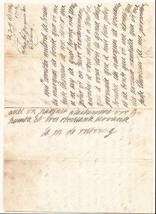 La Marquise de RISBOURG (1692-1746), Veuve de François-Philippe de MELUN, Marquis de RISBOURG, née Thérèse VILLAIN, dite de GAND, fille de Philippe Balthazar De GAND, Comte D'ISENGHEIN et de Louise Henrique De SARMIENTO SALVATIERRA Lettre A.S. au Duc d'ORMOND, 29 Mai 1712 - 3pp 1/2 in-8° - Elle le remercie de son envoi. On me plaisante; on dit que je suis prévenue en faveur des alliés; ce qu'il y a de sûr, c'est que je la suis infiniment pour leur Général. Elle lui demande ensuite de protéger sa terre de VALINCOUR (WALINCOURT 59) “Je crois qu'il est nécessaire d'avoir quelque garde ou cavalier pour faire valoir les blanc car hier on commença à faire quelque désordre à VALINCOUR et à emmener des bestiaux...”