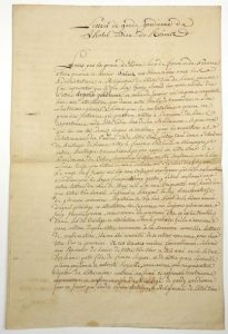 MARNE. PRIVILÈGES DE L'HOTEL-DIEU DE REIMS (51). Copies des «Lettres de GARDE GARDIENNE de l'Hôtel Dieu de REIMS du mois de Novembre 1721». Pièce signée pour copie collationnée signée par le Subdélégué de l'intendance de Champagne au département de REIMS ce 25 Août 1784. 3pp grand in-folio. Lettres obtenues par les Administrateurs et les Religieuses de l'Hôtel Dieu de REIMS «par lequel le Seigneur et Roy a approuvé et confirmé ce privilège de Garde Gardienne avec attribution par le Bailli de Vermandois à Reims, accordées aux Impétrants par le Roy Henry Second par ses Lettres du mois de 1558 à l'effet de plaider en première instance devant ledit Siège sur toutes les contestations et procès qui pourraient naître à l'occasion des Biens appartement audit Hôtel Dieu situés dans l'étendue de Bailliage de ceux de Vitry le François, Chalons, et autres...»