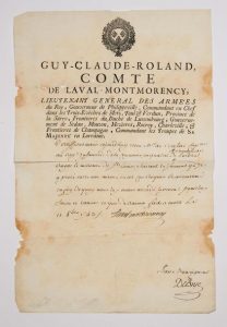 Guy Claude Roland de Montmorency, Comte de LAVAL, Maréchal de France en 1747 Pièce signée …
