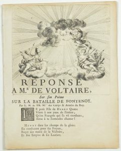 BATAILLE DE FONTENOY le 11 Mai 1745 : «RÉPONSE à Mr de VOLTAIRE, sur son poème sur la Bataille de FONTENOY