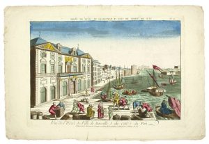 MARSEILLE (13) - 1 VUE D'OPTIQUE XVIIIe S. : «Vue de l'Hôtel de ville de MARSEILLE du coté du Port.» N°18 - Impr. à Paris chez J. Chereau rue St. Jacques au dessus de la Fontaine St Severin aux 2 colonnes N°257. Planche (36 x 53 cm)