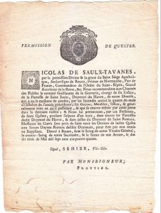 NORMANDIE NORMANDIE. LE HAVRE (76). PERMISSION DE QUESTER (Quêter), délivrée par Nicolas de SAULX-TAVANES …
