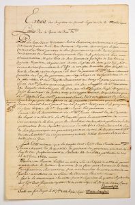 MARTINIQUE. 1764. JÉSUITES. - Extrait des Registres du Conseil Supérieur de la MARTINIQUE. Expédition d'un jugement de la Cour fait à St Pierre de la Martinique en le 17 Septembre 1764, concernant les créanciers des ci-devant soit disants Jésuites et le séquestre de leurs biens. Pièce signée des Notaires royaux de la Martinique et de Charles Marie EMERIGON Conseiller du Roy, Juge royal civil & criminel de la juridiction Royale du Bourg ST PIERRE de l'Ile de la Martinique. 4 pages grand in-folio.