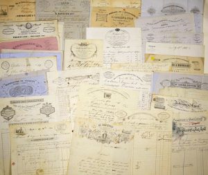 LYON (69) - COLLECTION DE 120 FACTURES de 1775 à 1912, toutes différentes, majorité XIXe S., à voir, quelques belles illustrations, qqs défauts : GARIN rue Neuve à Lyon, Chandelle à façon de bougie 1775 + CARRIER, Bossetier-Doreur et Argenteur sur Métaux, Grand ‘Rue Mercière, N°44, à Lyon 1818 + POCHAT & Cie, tiennent Fleurs, modes, Soieries et articles de nouveautés, 3 Grande Rue Mercière Lyon 1818 + TURPAULT & Cie, fabrique de Mouchoirs, 4 rue des trois Carreaux Lyon 1824 + DESCHAMPS & Cie, Soieries, Fournitures pour Chapellerie, 15 rue Dubois Lyon 1827 + CHARRIN, Draperies et nouveautés, 11 rue trois carreaux Lyon 1831 + PATURLE & Cie, tiennent Soieries, Schals, nouveautés, 1 rue St Pierre Lyon 1833 + CHAUTAGNAT DUSSIEUX Toiles, broderies, Rue St Dominique Lyon 1838 + BRÉBAND, Porcelaines, cristaux, faïences, 4 rue St Dominique Lyon 1838 + AYME fils 2 rue St Dominique Lyon 1838 + GERMANET, Fabrique de Carmin indigo, 7 rue de la gerbe Lyon 1842 + FUSIL Fumiste, fait toutes sortes de cheminées, Lyon 1846 + POUDRET magasin de Chapellerie, 1 Rue de la préfecture Lyon 1842 + PENCHINA Laines pour fabrique & pur matelas, 6 rue Malesherbes Lyon 1851 + BIÉTRIX, «A LA LICORNE» droguerie, pharmacie, Rue de l'Enfant-qui-pisse Lyon 1852 + THIEVON Frère, Epicerie, Droguerie, 5 Place des Cordeliers, Lyon 1853 + Pharmacie CLAUDIUS MOTTE 42 rue ci-devant de Bourbon, actuellement rue de la République Lyon 1855 + BOUCHE Manufacture de Papiers peints, 80 rue Centrale Lyon 1855 + Ancienne Maison CHAINE, Gds Magasins de nouveautés, Place des terreaux Lyon 1856 + BAUGIER Articles de Roubaix, 10 rue Gentil à Lyon 1861 + MAGE Ainé, manufacture de tissus métalliques, 92 rue de Sèze Lyon 1861 + MONTAUT, dépôt de Tricots e laine et Bonneterie, 71 rue Impériale Lyon 1861 + Mlles LONGERES & SANGOUARD Robes et confection, 1 rue de l'impératrice Lyon 186? + FILLON Ainé Rouennerie, indiennes, 12 rue Centrale Lyon 1862 + BLANC & CIE, Fabrique de Bijouterie et Joaillerie, Rue St Côme Lyon 1862 + FAYETON, Fabrique d'ornements d'Église, 2 Quai Fulcheron Lyon 1867 + Fabrique de Chocolat PAYRAUD & Cie, 20 rue d'Aboukir Lyon 1868 + RANDIN Confiseur, Place de la Comédie Lyon 1870 + GROBON Épicerie en gros, denrées coloniales, 2 rue de l'Hôpital Lyon 1872 + PERRAUD & MALARD Fabrique de Bijouterie et Joaillerie, 15 rue Mercière Lyon 1873 + Camille ZIPPERLIN Construction de mécaniques Jacquard, 17 rue saint Vincent de Paule, Croix-Rousse, Lyon 1876 + CORNILLON Perles en gros, 9 rue de la Préfecture Lyon 1879 + COTTIN Miroitier 25 Quai de l'Hôpital Lyon 1880 + MOSONI Manufacture de ferblanterie, 1 rue Saint André Lyon 1881, etc...