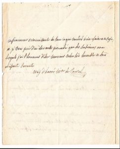 Duchesse de TOURZEL (Louise Élisabeth De CROY-D'AVRÉ) Gouvernante des Enfants de France en août 1789. Dévouée à la Famille Royale, elle se trouvait à Varennes, assista la Reine aux journées du 20 Juin et du 10 Août, et suivit les Souverains au Temple, avec sa fille Pauline. Toutes deux s'échappèrent et se cachèrent à Vincennes. Arrêtée pendant la Terreur, fut emprisonnée de nouveau lors de l'échange de Mme ROYALE avec les Conventionnels livrés aux Autrichiens par Dumouriez - Lettre A.S. “CROŸ D'HAVRÉ Marquise De TOURZEL”. PARIS le 27 Déc. 1788. Elle recommande une Affaire et un Mémoire à envoyer à l'Assemblée Provinciale d'AUVERGNE.” Je vous envoie le Mémoire qui m'a été envoyé de ST CIRGUES (63), et j'espère que vous voudrez bien permettre que je n'en joigne pas un particulier pour vous...” - 2pp in-8°.