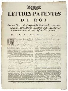 CÔTE D'OR. 1790. ASSEMBLÉES PRIMAIRES : “Lettres-Patentes du Roi, sur un Décret de l'Assemblée Nationale, contenant diverses dispositions relatives aux Assemblées de communautés & aux Assemblées primaires.” Signé (impr.) LOUIS XVI, DE SAINT PRIEST, visa de l'Archevêque de BORDEAUX - Données à PARIS le 3 Février 1790 - (dispositions : Serment Patriotique, Citoyen Actif ou éligible ; Milice bourgeoise, Garde Nationale Volontaire ) - Impr. à DIJON (21), Chez Jean-Baptiste CAPEL, Imprimeur de Mgr l'Evêque, du Commandement & de l'Intendance, 1790 - Vignette Royale & lettrine. Placard (51 x 38) État A