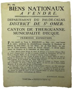 PAS-DE-CALAIS PAS-DE-CALAIS. 1791. BIENS NATIONAUX à vendre. N°186. Canton de THEROUANNE. Municipalité …