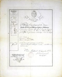 Baron Armand Louis Maurice SÉGUIER (Paris 1770-1831) Militaire Royaliste, Consul, Dramaturge et Commandeur de la Légion d'Honneur : Pièce Signée sur un PASSEPORT (48 x 38,5), en tant que Consul-général de France à LONDRES. Fait à LONDRES le 25 Septembre 1828. «Laissez-passer librement M. Jacob RICARDO, Banquier, accompagné de Madame son épouse, de Mademoiselles ses quatre filles, leur gouvernante, une domestique et un domestique, allant à Paris par Calais.