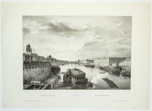 «PARIS. Vue du Louvre prise du PONT-NEUF» à Paris E. Ardit rue Vivienne. (c. 1840) Train de bois en premier plan. Litho (38 x 54.) Etat B.