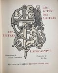 LOUYS (P.). Romans et nouvelles.ILL.M.Lydis.Id.,1934.7 vol.in-8 demi-mar.vert.Ex.num. -LONGUS. Daphnis et Chloé. Lithos P.Dauce. P.de Tartas, 1983 .In-folio mar.décoré.1/800 grand vélin de Rives avec une suite sur Japon impérial de 4 double planche tirées en sanguine. -LES EVANGILES selon Saint Matthieu, saint Marc, Saint Luc, Saint Jean.Ill. de A.Hubert. Ed. de l'Odéon, 1958. In-4 coffret.1/210 ex.num. sur vélin de Lana. -LES ACTES DE APOTRES. Les épîtres. L'apocalypse .Ill.A.Dussarthou. Id., 1960. In-4 coffret. 1/210 ex.num.sur vélin de Lana avec une planche de croquis originaux. -MUSSET (A.de). OEuvres complètes. Ill.en couleurs de G.Lepape. Le Vasseur et cie, 1937. 10 vol.in-4 demi-chag bleu, dos décorés. Ex.num.