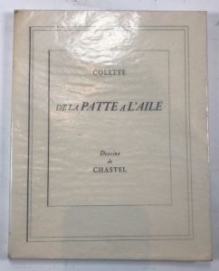 COLETTE. - De la patte à l'Aile. Dessins de Chastel. Paris, Corrêa, 1943. In-4, br. Ex. n°413 sur vélin Mongolfier d'Annonay. E.O.17 planches hors texte en couleurs