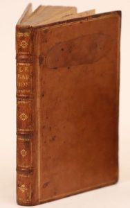 Discrètes restaurations à la reliure, manque de peau comblé au plat supérieur, renfort dans le fond des premières gardes, frontispice taché et doublé avec légers manques marginaux, brunissure en haut du titre.