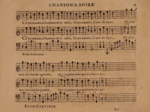 Cette plaquette rassemble la musique notée et les paroles de dix chansons, dont quatre airs sérieux : L'amour et le printemps ont comblé mes désirs (à une voix et basse continue), Lorsque Parette estoit notre amoureuse (à trois voix), Tout ressent icy bas le retour du printemps (à une voix et b. c.), C'est une douce folie (à deux voix et b. c.) ; et six airs à boire : Viens me voir, cher amy, je loge au cabaret (à trois voix et luth), Bachus et l'Amour (à trois vois), Ce jus aimable (à deux voix et b. c.), Encor, n'est-il rien que de vivre (à une voix et b. c.), Les femmes et la guerre (à trois voix et b. c.), La raison, l'amour et le vin (à trois voix).