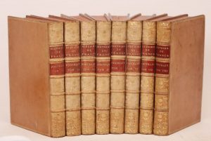 VELLY (Paul-François) et Claude VILLARET. Recueil des portraits des hommes illustres, dont il est fait mention dans l'Histoire de France, commencée par MM. Velly & Villaret, & continuée par M. l'abbé Garnier. Paris, Nyon l'aîné, 1781-1786. 8 volumes in-4, veau blond, triple filet doré, dos orné, tranches rouges (Reliure de l'époque). Importante collection de portraits gravés relatifs à l'Histoire de France de Velly, Villaret et Garnier, publiée séparément entre 1770 et 1789.
