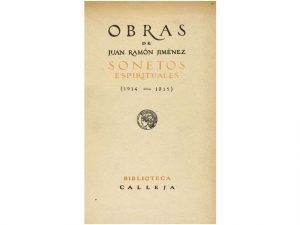 1917. (LITERATURA). JIMENEZ, JUAN RAMON: OBRAS DE... SONETOS ESPIRITUALES (1914-1915). Madrid: Casa Edit. Calleja, 1917. 8°. 138 p., 1 h. Rústica.