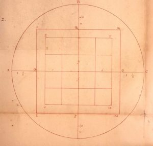 [MANUSCRIT]. CAUSANS (Joseph-Louis Vincens de Mauléon de). Démonstration de la quadrature du cercle. Par le Chevalier de Causans. S.l.n.d. [vers 1753]. Grand in-4 de [3] ff. et une grande planche repliée, cartonnage vert (Reliure de l'époque). Très beau manuscrit mathématique composé de 3 ff. liminaires pour le titre, la dédicace au roi et le Discours préliminaire, et d'une grande planche à double page (57 x 85 cm), montée sur onglet et repliée, sur laquelle figure, à gauche, le texte de la démonstration et, à droite, deux grandes figures géométriques tracées à l'encre rose et brune (environ 22 x 22 cm). Le texte, soigneusement calligraphié à l'encre noire, est encadré d'un double filet à chaque page et sur la planche repliée.