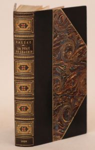 BALZAC (Honoré de). La Peau de chagrin. Études sociales. Paris, H. Delloye et V. Lecou, 1838. Grand in-8, demi-maroquin noir avec coins, filet doré, dos orné de motifs mosaïqués en maroquin rouge et citron et dorés, couverture, tranches dorées (Ch. Septier). Première édition illustrée, parue sept ans après l'originale. Le texte présente plus de 400 variantes par rapport à l'édition précédente.