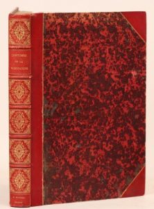 LANTÉ (Louis-Marie). Costumes des femmes du pays de Caux, et de plusieurs autres parties de l'ancienne province de Normandie. Paris, chez l'éditeur, 1827. In-4, demi-maroquin rouge avec coins, double filet doré, dos orné aux petits fers, tête dorée, non rogné (Reliure de la seconde moitié du XIXe siècle). Édition originale de ce superbe recueil de costumes normands en coloris d'époque, contenant un titre-frontispice et 105 planches gravés par Georges-Jacques Gatine d'après les dessins de Louis-Marie Lanté et de Benoît Pécheux.