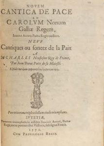 DORAT, Jean (1508-1588). ++Novem Cantica de Pace ad Carolum Nonum Galliae Regem…Neuf Cantiques …