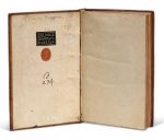 In-8 (157 x 99 mm). Nombreuses initiales gravées sur bois. Reliure de l’époque : veau havane, double encadrement de filets à froid sur les plats, fleuron à froid au centre, avec fleurons dorés aux angles de l’encadrement intérieur, dos à nerfs, caissons ornés de fleurons dorés et à froid, pièce de titre de papier et titre manuscrit au dos ( restaurations au dos et aux charnières – une note de J.P. Barbier-Mueller mentionne que la restauration fut exécutée par Rieder en 1972 ).
