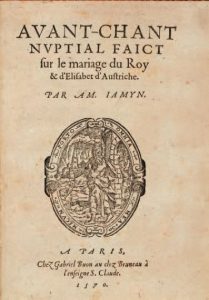 JAMYN, Amadis (vers 1540 – 1592). ++Avant-chant nuptial sur le mariage du Roy et d’Elisabet d’Austriche.
