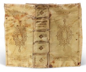 In-12 (139 x 78 mm). Exemplaire réglé. Marque de l’imprimeur sur la page de titre. Bandeaux et lettrines. Reliure de l'époque : vélin souple à recouvrements, filet doré en encadrement sur les plats, fleuron azuré au centre, en haut et bas des deux plats cartouches formés de fleurons et de filets dorés où se lisent les initiales « A U S » et la date « MDXCVII », dos lisse orné, tranches dorées, emboîtage de maroquin bleu nuit signé de Zaehnsdorf (